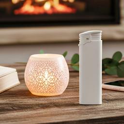 Die gummierte Oberfläche verleiht dem Feuerzeug nicht nur eine angenehme Haptik, sondern auch eine edle Optik – wahlweise in klassischem Schwarz oder Weiß. Mit einer Länge von 80 mm und einem Gewicht von nur 17 g liegt es optimal in der Hand.