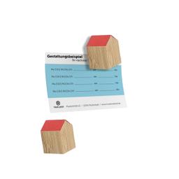 DOPPEL HAUS Natürlichkeit auf den Schreibtisch: Zwei Bambus-Magnete in Haus- oder Herzform halten Notizen & Fotos stilvoll fest. Geliefert auf individuell bedruckbarer Trägerkarte, wird das Set zum sympathischen Werbeträger – nachhaltig, handlich und perfekt für Immobilien & Handwerk.