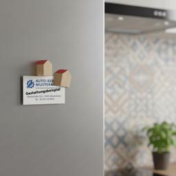 Besonders clever: Die Magnete werden auf einer individuell bedruckbaren Trägerkarte (65 x 100 mm) geliefert, die sich zum Beispiel als Visitenkarte nutzen lässt. So kombinierst du ein praktisches Giveaway mit einer persönlichen Werbebotschaft, die im Alltag deiner Kunden sichtbar bleibt.