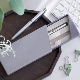 Das Schreibset EPIC LINE vereint modernes Design, hochwertige Materialien und eine besondere Wertigkeit – ideal für Unternehmen, die ein stilvolles Präsent suchen, das täglich genutzt wird und nachhaltig im Gedächtnis bleibt. Das Set besteht aus einem Kugelschreiber und einem Rollball, beide exklusiv für BERENDSOHN entwickelt und in einer eleganten, grauen Geschenkschachtel verpackt.