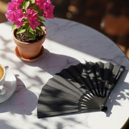 Der Handfächer HITZEFREI 2.0 vereint Eleganz und Funktion: schwarzer Bambus & Satinstoff, passender Mikrofaserbeutel und viel Platz für dein Logo auf dem Holzgriff. Leicht, handlich und stilvoll – ein Werbegeschenk, das an heißen Tagen erfrischt und deine Marke in Szene setzt.