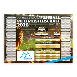 Wenn das Fußballfieber steigt, liefert SPIELRAUSCH den perfekten Überblick. Der WM-Spielplan im A1-Format zeigt alle Termine und Ergebnisse auf einen Blick. Farbstark gedruckt und mit Werbefläche am Rand – ideal für Büros, Gastronomie und Events mit viel Fan-Stimmung.